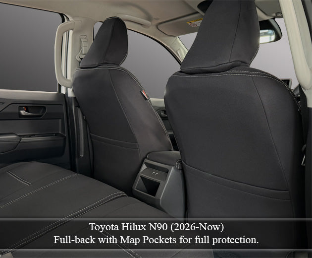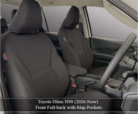 Toyota Hilux 9th Gen N90 Seat Covers Workmate (2026 - Now) - Front Full-length With Map Pockets and Rear Bundle - Premium Neoprene
