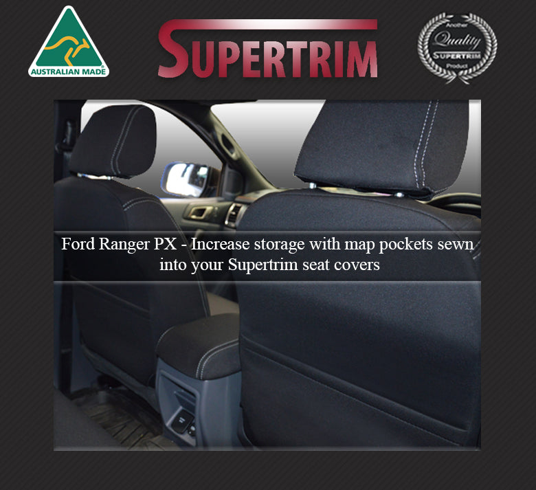 Ford Ranger Seat Covers PX II & PX III (Sep 2015 - Jun 2022) - Front Full-length With Map Pockets and Rear Bundle - Premium Neoprene