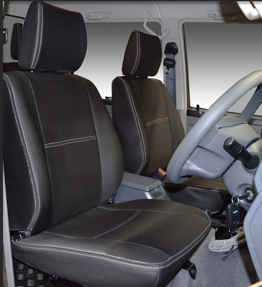 Toyota Landcruiser 70, 78 series Seat Covers VDJL/GDJL (1995-2015) - Front Full-length With Map Pockets and Rear Bundle - Premium Neoprene